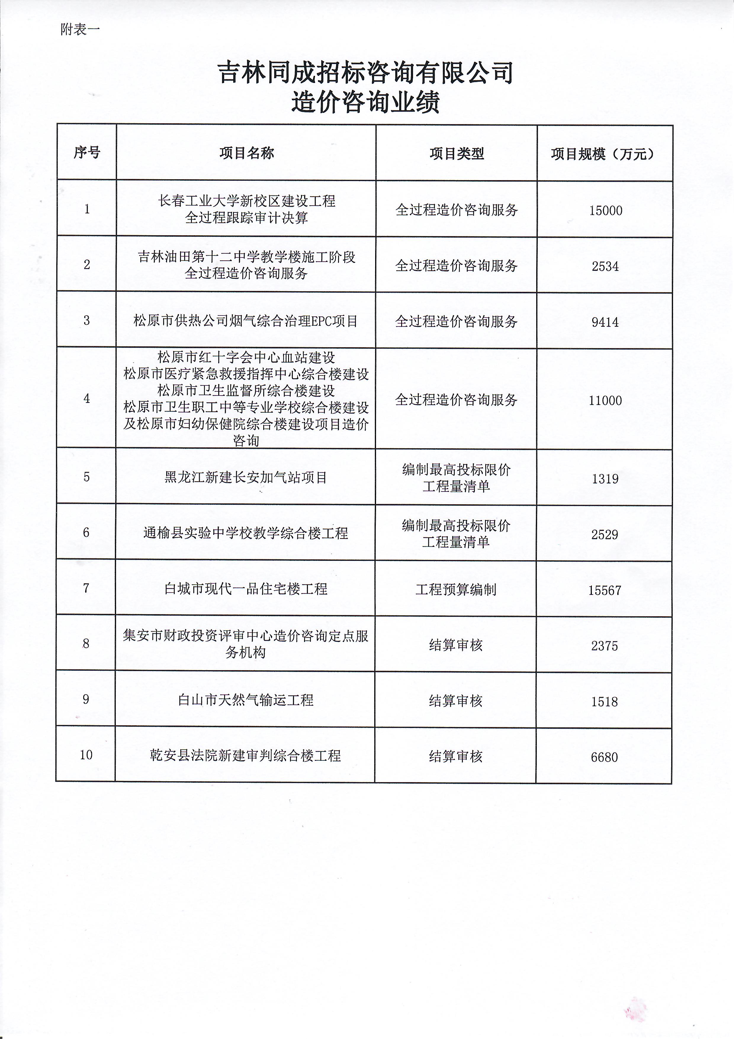 • 造價咨詢業績